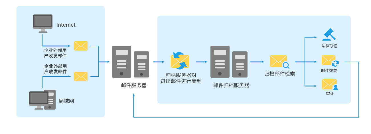 郵件歸檔系統(tǒng)可全面遵從國(guó)內(nèi)外各項(xiàng)相關(guān)政策和法規(guī)中關(guān)于郵件數(shù)據(jù)管理規(guī)范的要求,保障長(zhǎng)期有效地對(duì)郵件數(shù)據(jù)進(jìn)行安全保護(hù)、查詢調(diào)閱、使電子郵件在企業(yè)機(jī)構(gòu)中的應(yīng)用合理合法。美國(guó)公布的塞班斯法案,要求上市公司保留所有業(yè)務(wù)記錄,包括電子記錄和郵件在內(nèi),不少于5年。2018年,公安部718會(huì)議發(fā)布的《黨政機(jī)關(guān)、事業(yè)單位和國(guó)有企業(yè)互聯(lián)網(wǎng)電子郵件系統(tǒng)安全等級(jí)保護(hù)擴(kuò)展要求》也對(duì)郵件歸檔做了詳細(xì)的要求。