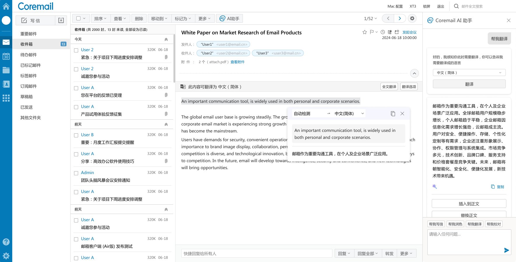 Coremail AI郵箱助手:翻譯服務(wù),提升跨語(yǔ)言辦公效率